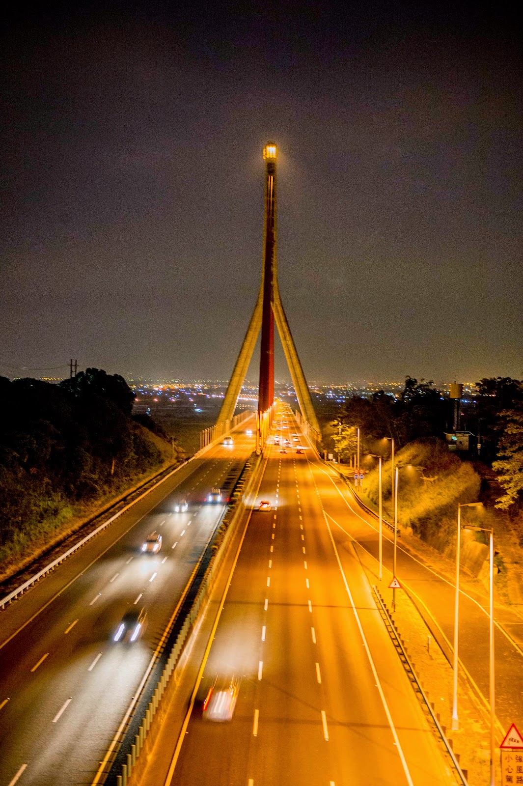 在橫跨國3鄉道橋上拍照斜張橋夜景